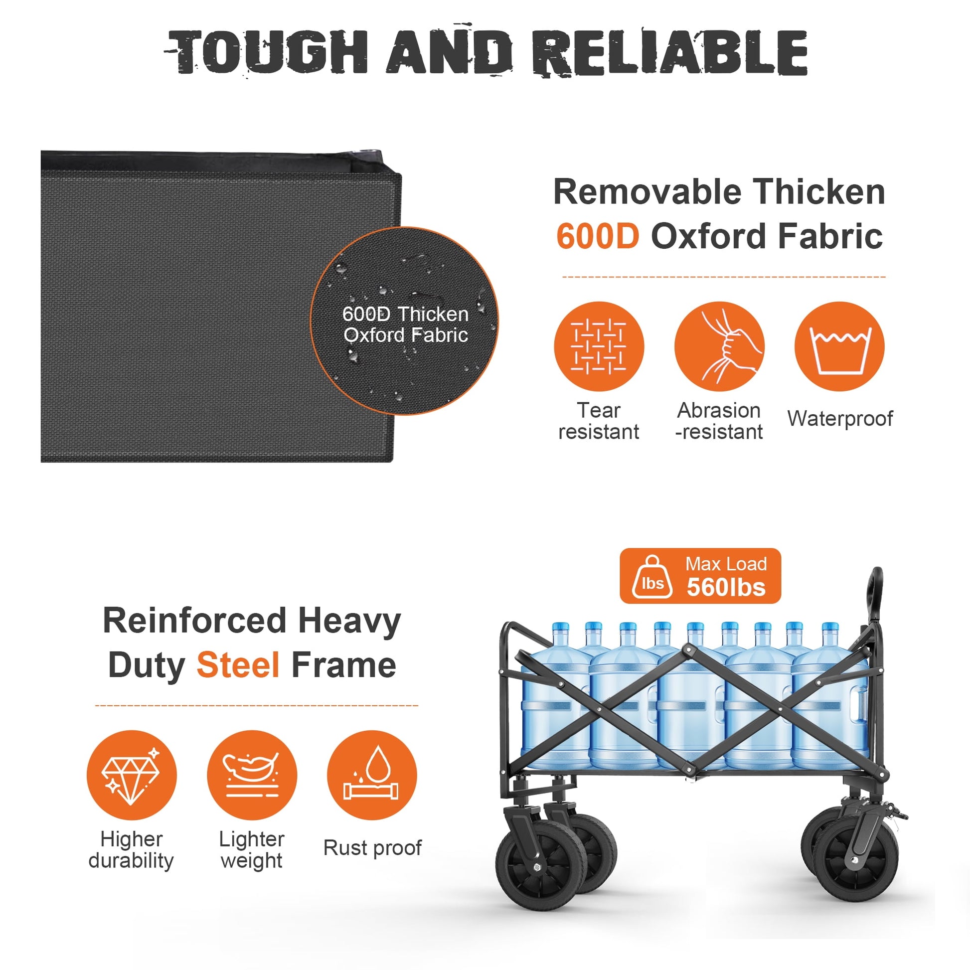 Sturdy steel folding frame allows loads up to 560 pounds