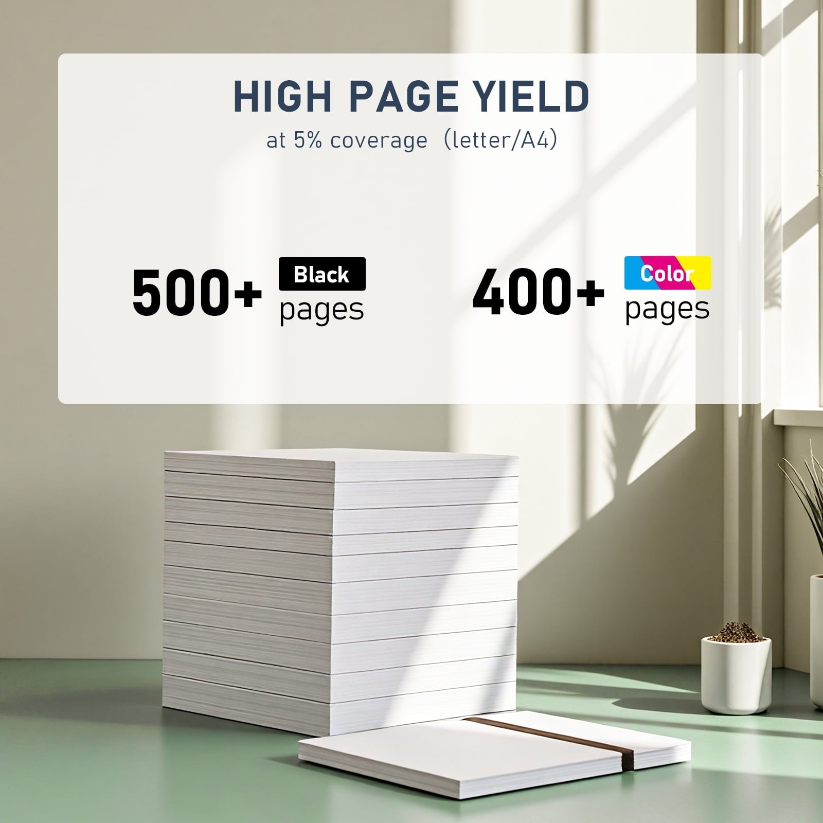 High Page Yield: Up to 500 Pages per 63XL Black ink cartridge, 400 Pages per 63XL Color ink cartridge (at 5% coverage Letter/A4 ).