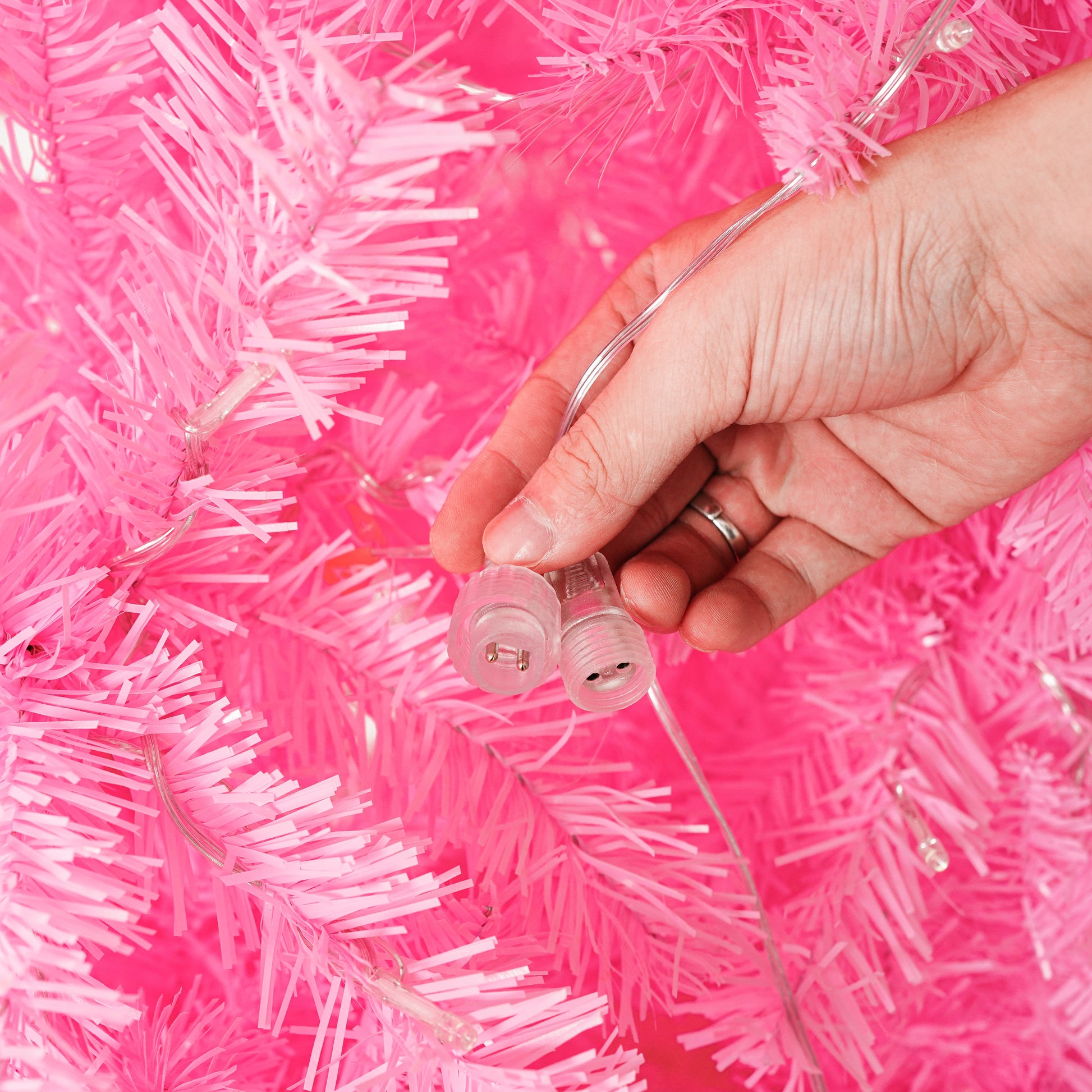 New Updated 7.5Ft Artificial Pre-Lit Pink Christmas Tree with Full 1300 Branch Tips