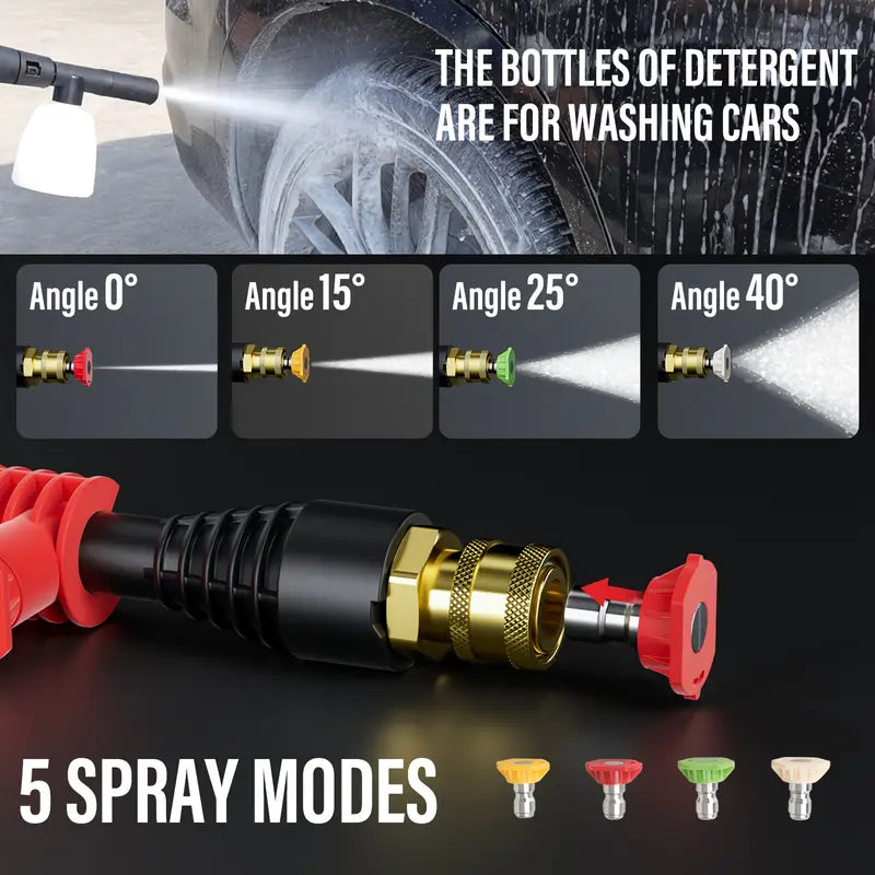 MZK Electric Power Washer - 3.0GPM, 360° Rotating Wheels, 4 Nozzles & Foam Cannon, Ideal for Cars And Driveways
