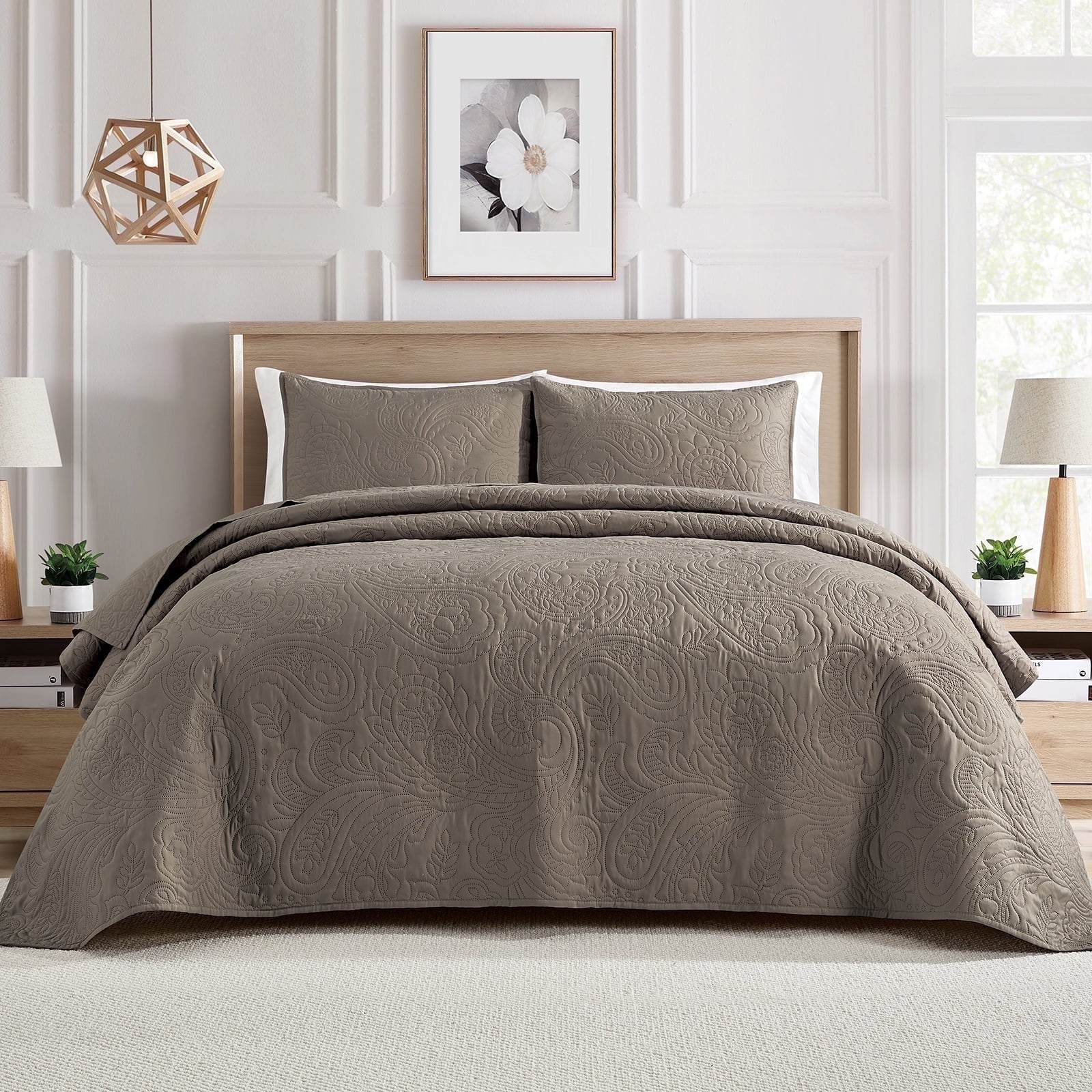 Bourina Modern Floral 3-Piece Quilt Set– Queen,Taupe,Lightweight & Comfortable,Perfect for All Seasons