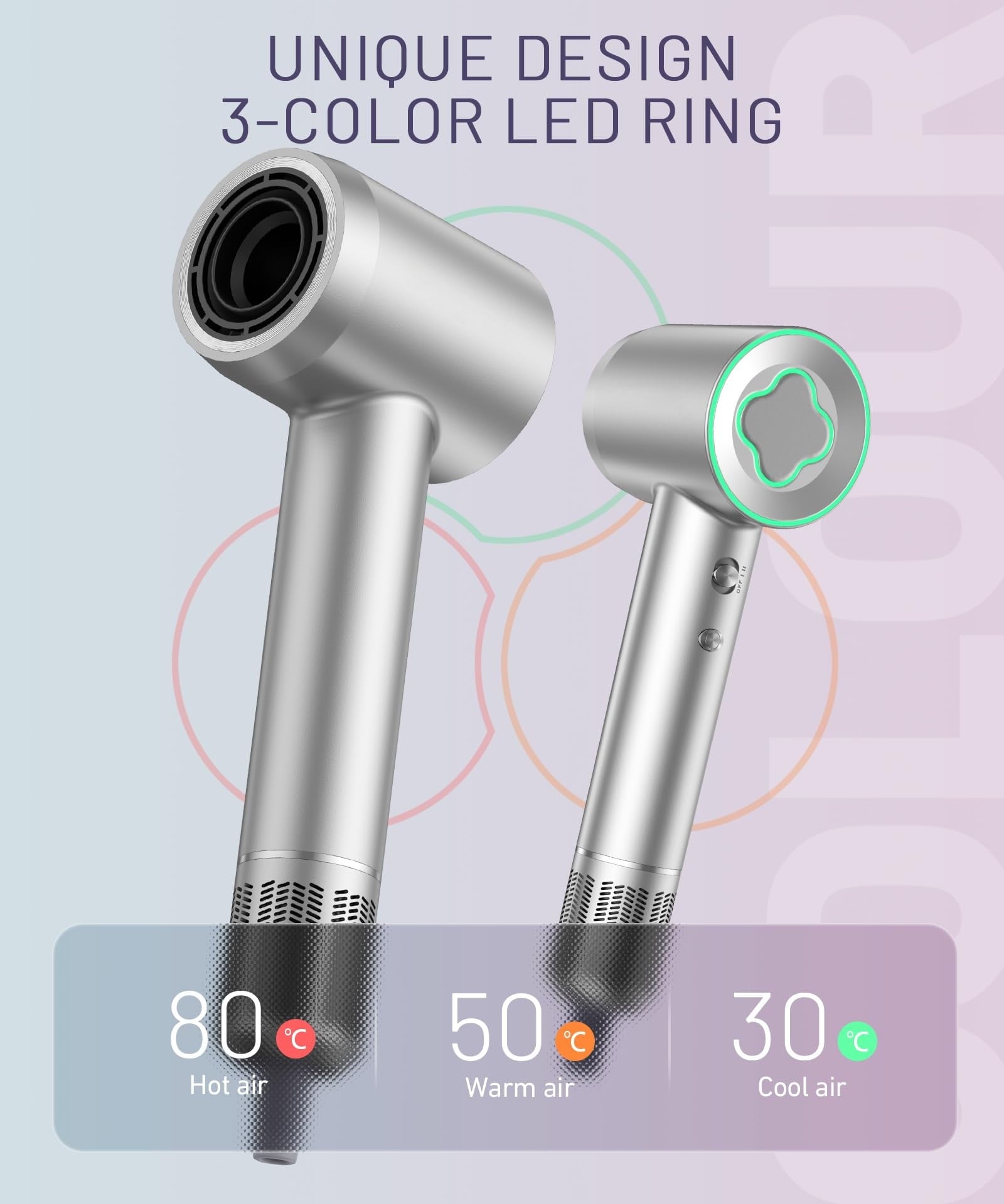 Equipped with a high-speed brushless motor of 150,000 RPM, this hair dryer provides powerful airflow of 36 m/s to dry your hair in as little as 2-5 minutes, significantly faster than traditional hair dryers.