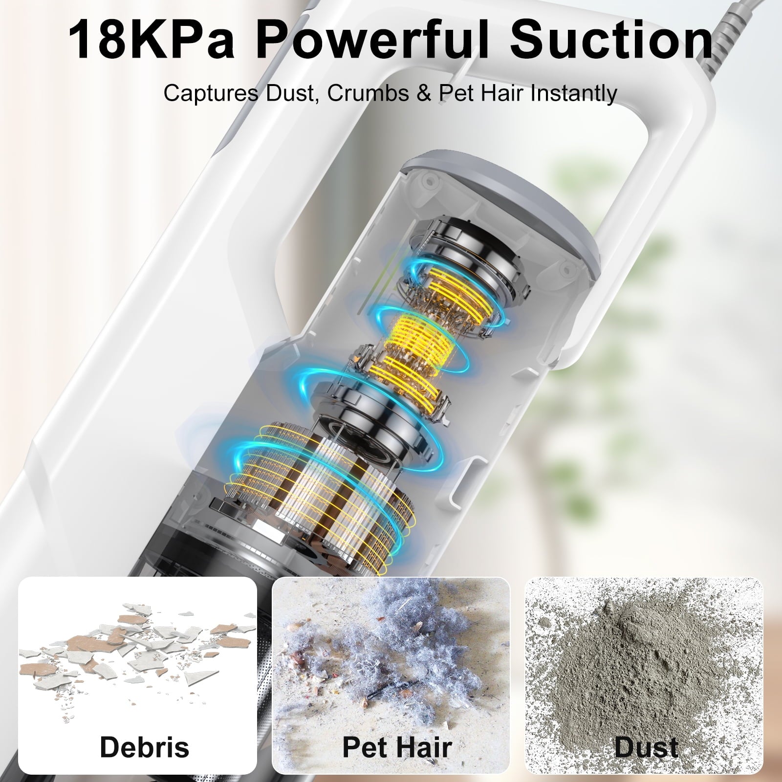 【Powerful 600W Motor & 18KPa Suction】Effortlessly tackle dust, pet hair, and debris with a 600W high-efficiency motor that delivers up to 18KPa of suction power—perfect for hard floors, tiles, and low-pile carpets.