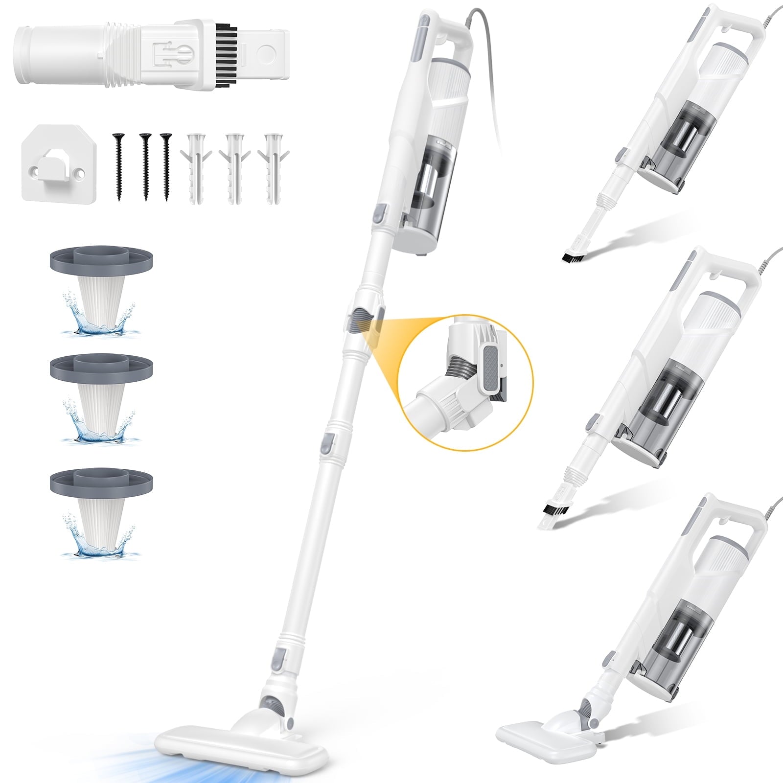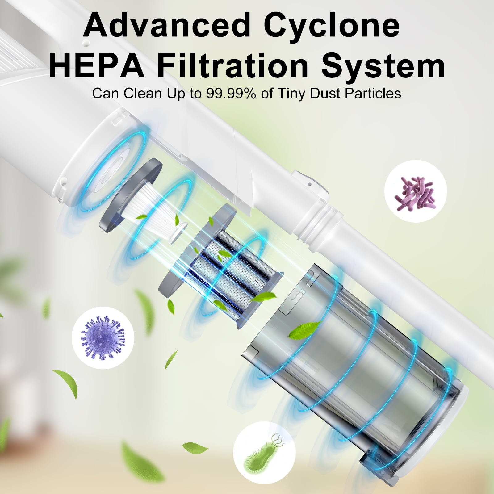 【Triple Filtration & 16.4ft Long Cord】Equipped with a HEPA filter, metal mesh, and sponge filter to trap fine dust. Extra-long cord gives you wide cleaning coverage without changing outlets.