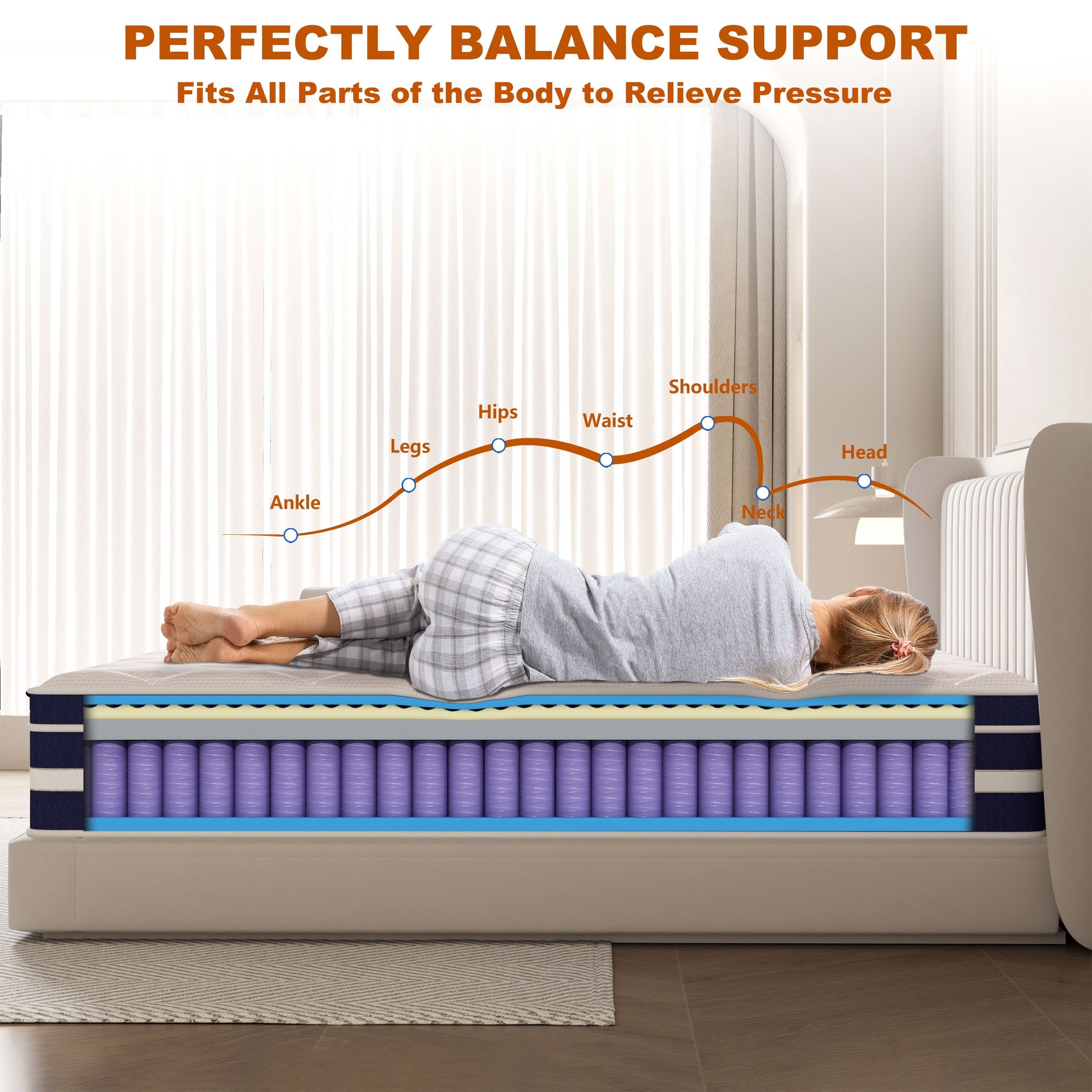 Scientific Support System:Combines Individual pocket coils and cooling gel memory foam, makes the body more fully contacts the mattress and distribute weight more evenly.suitable for adults, students.