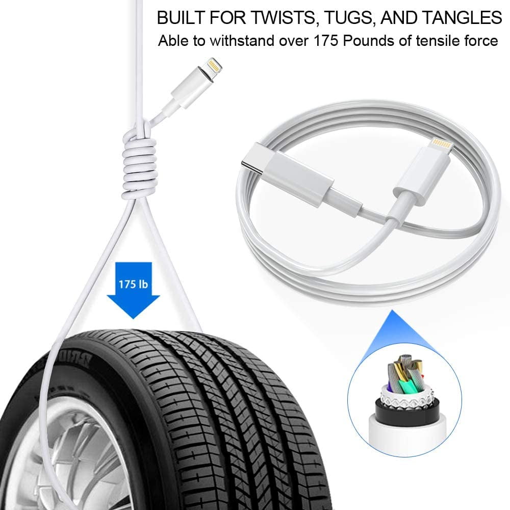 The 20W USB-C port PD fast adapter USB C wall charger and 6ft usb c to lightning cable, which can reach up to 3X faster than the Apple original 5W charger.