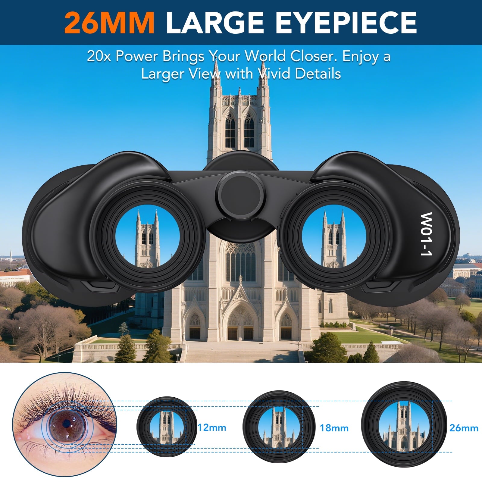 • High-Powered Magnification & Wide View: These binoculars for adults high powered feature 20x magnification and a 168-yard field of view at 1000 yards, bringing distant objects into sharp, detailed focus—ideal for bird watching, hunting, stargazing, and large venues. Designed for Extended Comfort: With 26mm large eyepieces tailored for adult users, these binoculars for adults reduce eye strain and dizziness during long-term use, offering a comfortable viewing experience for travel, cruises, and outdoor adventures. Superior Optical Clarity: Multilayer-coated aspherical lenses and BAK4 Porro prisms ensure 99.8% light transmission with enhanced brightness, contrast, and color accuracy. These high powered binoculars deliver crisp images even in low-light conditions. Durable & Waterproof Build: Made with a rubber-armored, waterproof shell and anti-slip ergonomic grip, these binoculars are essential hunting essentials and cruise essentials, built to perform in harsh environments Easy Focus & Portable: The sensitive central focus wheel allows quick one-finger adjustment for clear vision without blurring. Includes a carrying case, making these binoculars for adults high powered a perfect gift and practical tool for hiking, sports, and safari. Specifications Magnification: 20x Objective lens diameter: 50mm Eyepiece diameter: 26mm Prism: BAK4 Focus System:Center Field of View: 168ft at 1000yds Angle of field: 7.5 Coating: FMC (Fully Multi-Coated) Weight of binoculars: 1.96 pounds Product size: 185*53 *196mm Package Includes: 1X Binoculars 1X Neck Strap 1X Lens Cloth 1X Carrying Bag 1X Objective Lens Caps 1X Ocular Lens Caps 1X Manual 1X Package Box (In case of missing accessories, please contact us through the following email:woerma1226@163.com, our support team will deal with within 12 hrs, thank you